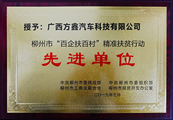 廣西方鑫汽車科技有限公獲評(píng)柳州市“百企扶百村”精準(zhǔn)扶貧行動(dòng)“先進(jìn)單位”榮譽(yù)稱號(hào)