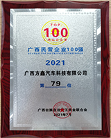 廣西方鑫汽車科技有限公司獲評(píng)2021年廣西民營企業(yè)100強(qiáng)第79位榮譽(yù)稱號(hào)