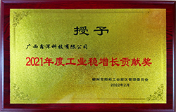 廣西鑫深科技有限公司獲評(píng)柳州市陽和工業(yè)新區(qū)2021年度工業(yè)穩(wěn)增長貢獻(xiàn)獎(jiǎng)