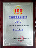 廣西方鑫汽車科技有限公司獲評(píng)廣西民營企業(yè)100強(qiáng)第59位榮譽(yù)稱號(hào)