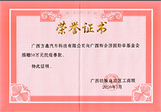 廣西方鑫汽車科技有限公司獲評(píng)2020年廣西工商聯(lián)新冠抗議愛心捐贈(zèng)優(yōu)秀民營企業(yè)榮譽(yù)稱號(hào)
