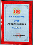 廣西方鑫汽車科技有限公司獲評(píng)2020年廣西民營企業(yè)100強(qiáng)第70位榮譽(yù)稱號(hào)