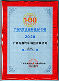廣西方鑫汽車科技有限公司獲評(píng)獲評(píng)2020廣西民營企業(yè)制造業(yè)100強(qiáng)第35位榮譽(yù)稱號(hào)